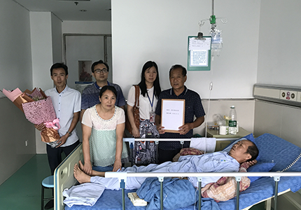 6月13日上午,棟方股份人事行政中心副總監(jiān)周金桃、工會(huì)委員會(huì)主席李亨波及生產(chǎn)運(yùn)營(yíng)中心龔冠男一行前往嚴(yán)安喜治療所在醫(yī)院進(jìn)行慰問(wèn)。當(dāng)我們將募捐款項(xiàng)送到嚴(yán)安喜家人手中時(shí),他們激動(dòng)不已,再三致謝,感恩企業(yè)對(duì)嚴(yán)安喜的關(guān)心與幫助。工會(huì)主席李亨波鼓勵(lì)嚴(yán)安喜要堅(jiān)強(qiáng)、積極、勇敢地面對(duì)疾病,樹(shù)立起戰(zhàn)勝疾病的信心,爭(zhēng)取早日擺脫病痛、恢復(fù)健康,并轉(zhuǎn)達(dá)了棟方股份全體員工對(duì)嚴(yán)安喜及其家屬的鼓勵(lì)。