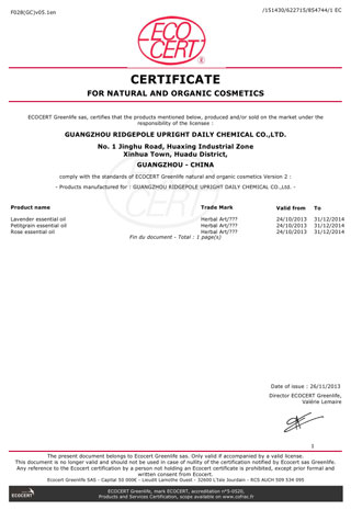 ○ 歐盟ECOCERT天然有機(jī)化妝品生產(chǎn)認(rèn)證證書(shū)